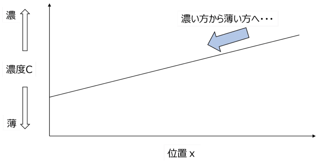- 物質の流れは「濃度の勾配」に比例する。