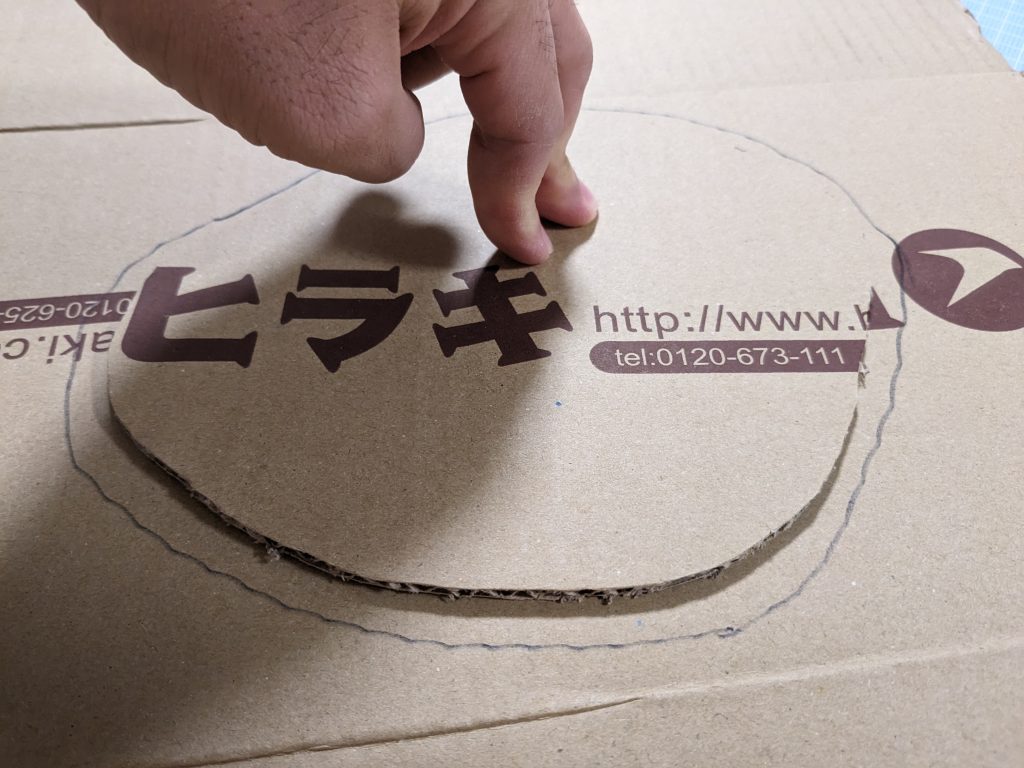 私たちは今回、段ボールをドーナツ型に切り抜いてガイドを作り、その溝にクリアファイルを挟み込んで固定する方法を試しました。