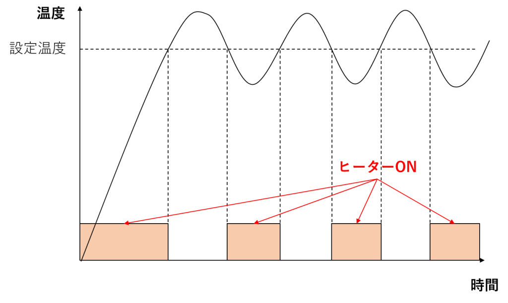 温度制御は、簡単に言えば「今の温度」と「目標の温度」を比較して、その差に応じてヒーターなどをON/OFFしたり、加熱量を調整したりする仕組みです。