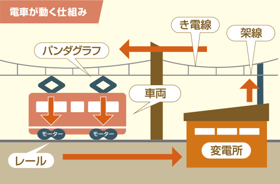 • 電車が走るための電気を受け取る